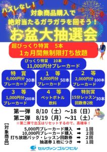 毎年恒例の「お盆大抽選会」ですが、今回は松山選手がオリンピックで銅メダル獲得を祝して例年より早めに開催します!!